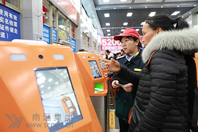 “小紅帽”引導旅客刷身份證進站乘車