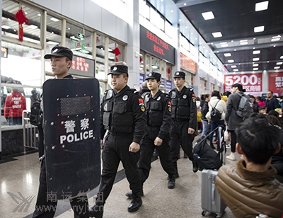 車站派出所公安干警和特警巡邏執(zhí)勤