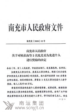 附:南充市人民政府《關(guān)于對(duì)姚長海等2名見義勇為先進(jìn)個(gè)人進(jìn)行獎(jiǎng)勵(lì)的決定》(南府發(fā)〔2020〕12號(hào))