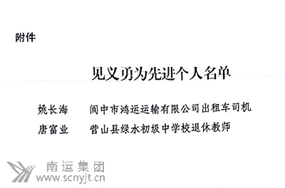 2020年12月底,經(jīng)六屆南充市人民政府第144次常務(wù)會(huì)議審議通過,決定對(duì)姚長海、唐富業(yè)2名見義勇為先進(jìn)個(gè)人進(jìn)行獎(jiǎng)勵(lì),每人0.5萬元人民幣,并下發(fā)《關(guān)于對(duì)姚長海等2名見義勇為先進(jìn)個(gè)人進(jìn)行獎(jiǎng)勵(lì)的決定》(南府發(fā)〔2020〕12號(hào))。 姚長海52歲,蓬安人,現(xiàn)為南運(yùn)集團(tuán)閬中鴻運(yùn)運(yùn)輸有限公司里一名出租車駕駛員。2018年11月26日上午,姚長海在搭乘一名女孩時(shí),發(fā)現(xiàn)該女孩滿面淚痕,于是他在途中勸導(dǎo)女孩,可對(duì)方并不回應(yīng),女孩下車時(shí)將車費(fèi)交到姚長海手中便迅速離去。姚長海感覺情況異常,于是將車停在路邊,下車尋找女孩。在尋至嘉陵江邊時(shí),姚長海發(fā)現(xiàn)女孩已經(jīng)跳江,于是他奮不顧身躍入冰冷的江水中奮力施救,最終在岸上群眾的幫助下把輕生女孩救上岸,讓正處花季的生命得以延續(xù)。 姚長海不但多次見義勇為,他在平時(shí)的營運(yùn)過程中也始終堅(jiān)持做到扶老攜幼、熱情服務(wù)、文明待客,從不欺客宰客、從不拒載;凡拾到乘客遺失的物品,他都立即聯(lián)系失主或上交公司;每年高考,他都積極參加公司組織的免費(fèi)送考服務(wù);在同事遇到困難時(shí),他都會(huì)出手幫一把。他總是說:“誰沒有困難的時(shí)候,自己能幫一把就幫一把”。 姚長海在寒冷的嘉陵江中將17歲輕生女孩救上岸的英勇壯舉在《中央電視臺(tái)》《人民日?qǐng)?bào)》《新華社》《新京報(bào)》《四川日?qǐng)?bào)》等全國300多家新聞媒體和網(wǎng)絡(luò)平臺(tái)廣為報(bào)道,在全中國產(chǎn)生了廣泛的影響;他見義勇為和平時(shí)拾金不昧及助人為樂的先進(jìn)事跡感動(dòng)了社會(huì),獲得了應(yīng)有的榮譽(yù)和獎(jiǎng)勵(lì)。他曾入選“2018年感動(dòng)南充十大新聞人物”,先后被評(píng)為“閬中好人”、“最帥的哥”,并獲得阿里巴巴“2018年度正能量人物”和獎(jiǎng)金1萬元;2019年他被評(píng)為“四川好人”,2020年獲得南充市政府的表彰和獎(jiǎng)勵(lì)。 姚長海作為南運(yùn)集團(tuán)出租車駕駛員,為南充出租行業(yè)爭了光,為社會(huì)、也為出租車駕駛員及公司員工樹立了良好的榜樣。希望廣大員工向姚長海同志學(xué)習(xí),做一個(gè)樂于助人、道德高尚、受人尊敬的人,為提升企業(yè)形象、建設(shè)平安南充作出新的更大貢獻(xiàn)。