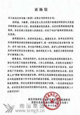 鄧迪還自費(fèi)為社區(qū)各值守點(diǎn)位捐贈(zèng)飲用礦泉水十余件,極大的彰顯了南運(yùn)集團(tuán)共產(chǎn)黨員在關(guān)鍵時(shí)刻、危難時(shí)刻奉獻(xiàn)社會(huì)的先鋒模范作用,社區(qū)大媽們翹起大拇指說(shuō):“你們南運(yùn)人真棒!”8月27日,順慶區(qū)西山街道辦事處伍家埡社區(qū)居民委員會(huì)還給南運(yùn)集團(tuán)旅游分公司寄來(lái)了情真意切的《感謝信》。