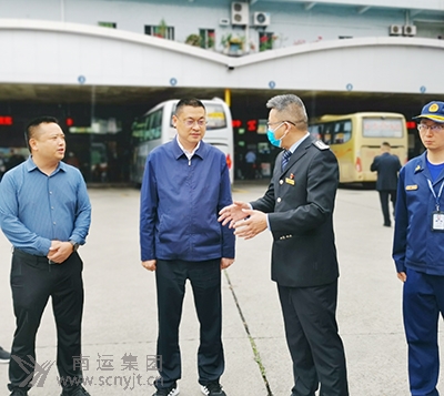 順慶區(qū)委常委、副區(qū)長陳崛(左二)檢查南充市城北汽車客運站“五一”安全生產(chǎn)工作