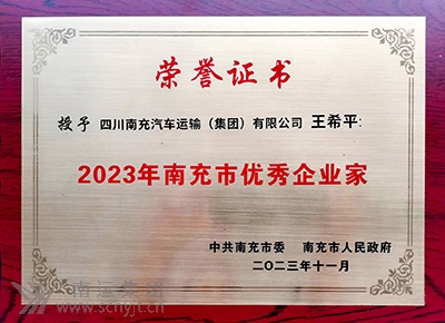 南運集團黨委書記、董事長、總經(jīng)理王希平 榮獲“2023年南充市優(yōu)秀企業(yè)家”稱號