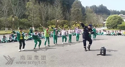 蓬安分公司客運科副科長張偉帶領(lǐng)同學們跳《科目三》舞蹈