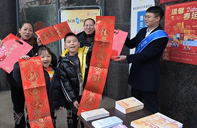 年味漸進(jìn),為營造春節(jié)氛圍,1月20日上午,南充市城北汽車客運站為務(wù)工人員返鄉(xiāng)回家過年的旅客送“福袋”。 據(jù)悉,“福袋”里有窗花、對聯(lián)、紅包,旅客在購票排隊領(lǐng)取車站派送的新春禮物“福袋”!皼]想到剛抵達(dá)城北汽車站,就收到驚喜。”一位從廣州返鄉(xiāng)的南充籍務(wù)工人員如是說。 目前正值外出務(wù)工人員返鄉(xiāng)的高峰期,該站特準(zhǔn)備“福袋”作為禮物送給旅客,讓他們帶“福”回家過年。當(dāng)天,該站免費送出“福袋”200多份,受到旅客點贊。 (城北汽車客運站 羅雪)