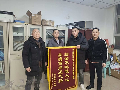 1月26日晚22時,鴻運出租公司營山分公司川R19R93駕駛員張超在營運途中,于后排座拾得一手提包,內(nèi)有現(xiàn)金壹萬元和其他貴重物品。張超隨即聯(lián)系公司,經(jīng)其本人回憶和公司結合視頻監(jiān)控查找,確定屬銀杏大酒店上車至營盛廣場下車的一名乘客。 經(jīng)公司多方努力,成功聯(lián)系到失主并將手提包歸還。失主彭先生非常感激,對張超熱情服務和高尚品德給予高度評價,并于2月19日給張超贈送了一面寫有“拾金不昧暖人心 品德高尚正氣揚”的大紅錦旗,以表謝意。 為弘揚正能量,鼓勵廣大駕駛員學習張超同志這種拾金不昧的精神,營山鴻運分公司特在駕駛員大會上對張超給予了通報表揚。 (營山分公司 唐方仲)
