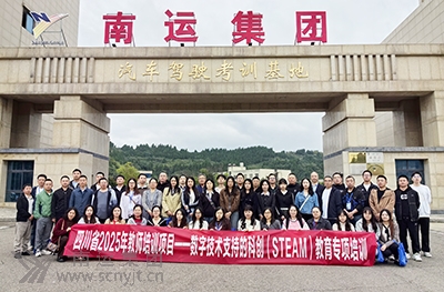 參加四川省2025年教師培訓(xùn)項(xiàng)目——數(shù)字技術(shù)支持的科創(chuàng)(STEAM)教育專項(xiàng)培訓(xùn)的教師合影留念。