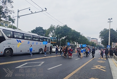藝術(shù)周期間,各演出團(tuán)隊(duì)在南充大木偶劇院、南充大劇院、西華師范大學(xué)、川北醫(yī)學(xué)院臨江校區(qū)、西南石油大學(xué)南充校區(qū)、黃金江岸濕地公園、嘉陵江大草原、王府井商場(chǎng)、南充高中嘉陵校區(qū)、儀隴縣德園廣場(chǎng)共十個(gè)點(diǎn)位,呈現(xiàn)出“十點(diǎn)同映、全民共享”的文化盛景,同時(shí),在閬中古城張飛廣場(chǎng)、貢院廣場(chǎng)、道臺(tái)照壁3處核心區(qū)域帶去了獨(dú)具文化韻味的惠民盛宴。累計(jì)開展精彩演出70余場(chǎng),惠及群眾數(shù)萬(wàn)人次,為南充人民帶來(lái)持續(xù)不斷的驚喜。 南運(yùn)保障團(tuán)隊(duì)的足跡也隨之遍布全城,與這場(chǎng)文化盛會(huì)同頻共振。無(wú)論是深夜抵達(dá)機(jī)場(chǎng)接機(jī),還是清晨出發(fā)的演出接送;無(wú)論是細(xì)雨中穿梭于城市街道,還是寒風(fēng)中守候在演出地點(diǎn)門口,南運(yùn)人始終以飽滿的熱情與專業(yè)的素養(yǎng)默默堅(jiān)守,緊跟演出節(jié)奏,嚴(yán)格執(zhí)行發(fā)車計(jì)劃,每趟出車均提前20分鐘開啟空調(diào),確保車廂溫度適宜、環(huán)境溫馨;每一輛車都車容整潔、標(biāo)識(shí)鮮明,“南運(yùn)集團(tuán)”字樣在冬日街頭熠熠生輝,成為一道流動(dòng)的城市風(fēng)景線;每一位駕駛員身著統(tǒng)一制服、面帶微笑,如忠誠(chéng)衛(wèi)士般守護(hù)著每一位乘客的安全出行。駕駛員們規(guī)范的操作、暖心的服務(wù)和專注的身影,成為了藝術(shù)家們認(rèn)識(shí)南充、感受南充服務(wù)的生動(dòng)窗口,贏得了國(guó)內(nèi)外嘉賓的廣泛贊譽(yù)。