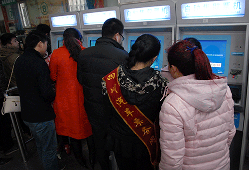 雖然車(chē)站在市轄三區(qū)和郵政網(wǎng)點(diǎn)設(shè)置了50個(gè)站外售票點(diǎn),但售票廳9個(gè)售票窗口一直排著購(gòu)票的旅客隊(duì)伍。車(chē)站臨時(shí)增加了1個(gè)出售成都和1個(gè)出售廣東、深圳、汕頭的售票車(chē)處。車(chē)站自助取票機(jī)由原來(lái)的4臺(tái)增設(shè)為6臺(tái),旁邊張貼著印有二維碼、支付寶等條目標(biāo)的“南充客運(yùn)站官方網(wǎng)站”,在四川汽車(chē)票務(wù)網(wǎng)兩名工作人員和1名“小紅帽”站務(wù)人員的引導(dǎo)下,讓旅客通過(guò)手機(jī)掃二維碼購(gòu)買(mǎi)車(chē)票。一名去宜賓的年輕旅客,拿出手機(jī),輕輕掃了一掃二維碼,便成功地取到了由南充去宜賓的汽車(chē)票,他高興地說(shuō):“互聯(lián)網(wǎng)+掃二維碼,快捷地就買(mǎi)了車(chē)票,不用排隊(duì)了,真方便。”售票大廳里排隊(duì)購(gòu)票的秩序井然,但沒(méi)有看見(jiàn)售票廳象往年那樣排隊(duì)購(gòu)票的隊(duì)伍排到售票廳外面的現(xiàn)象了。