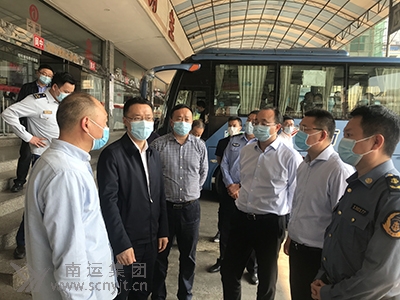 西充縣委書記孫駿(左二)檢查西充客運(yùn)中心疫情防控安全生產(chǎn)工作。