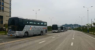 5月17日下午5點30分,南運集團接到上級赴廣安鄰水抗疫緊急運輸指令后,黨委書記、董事長、總經理王希平立即召集相關領導開會,決定將此任務交給高速客運分公司黨員先鋒隊,親自坐鎮(zhèn)指揮緊急出征有關事宜。高速客運分公司迅速通知技術科做車輛出發(fā)前安全檢查、消毒;辦公室負責落實防疫物資上車;財務科調撥資金保證應急使用;出征駕駛員在半小時內馬上集結。當晚7點50分,高速客運分公司黨支部書記兼副經理龐林領隊,帶領21名政治過硬、技術過硬的黨員先鋒號駕駛員和21輛南運大巴,組成南運集團共產黨員先鋒隊,還未來得及吃晚飯,就緊急集結在南充汽車客運站,冒雨出征,星夜馳援廣安鄰水抗擊疫情。這是全省第一支最早從外地到達鄰水疫區(qū)的專業(yè)運輸保障車隊。 南充市交通運輸局黨委委員、副局長張世明親自作出征動員講話。南運集團黨委書記、董事長、總經理王希平宣布出發(fā)。南充市道路運輸事務中心主任李恒、副主任張能斌,集團公司副總經理岳軍,黨委副書記、工會主席鮮志強,紀委書記、監(jiān)事會主席胡仕杰和黨群辦、營運處以及南充客運站有關負責人參加了出征儀式。 5月20日下午3點鐘,按照王董事長的安排,第二批南運集團共產黨員先鋒隊20輛南運大巴(其中:高速客運分公司11輛、高坪分公司8輛、順慶分公司1輛),1輛后勤保障車,20名客車駕駛員和10名隨車管理人員(車業(yè)分公司副經理李盛、高速客運分公司副經理任小平、高坪分公司副經理文浩參與保障工作)又迅速在南充汽車客運站集結赴鄰抗疫。